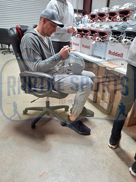A New England Patriots Speed Flex Authentic Slate NFL Helmet hand signed by Rob Gronkowski. The item and signature are in excellent condition. Rob is a 5x All-Pro First Team, 5x Pro Bowler, and 2x Super Bowl Champion. AUTHENTICATION: Your item is tagged with a Rob Gronkowski exclusive SmarTag powered by Prova Technology, which gives you digital access to your items authentication records, which includes a proof picture from the signing.
