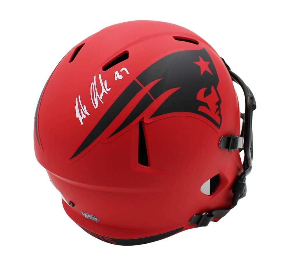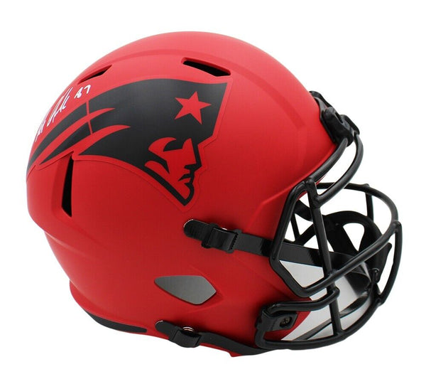 A New England Patriots Speed Replica Rave NFL Helmet hand signed by Rob Gronkowski. The item and signature are in excellent condition. Rob is a 5x All-Pro First Team, 5x Pro Bowler, and 2x Super Bowl Champion. AUTHENTICATION: Your item is tagged with a Rob Gronkowski exclusive SmarTag powered by Prova Technology, which gives you digital access to your items authentication records, which includes a proof picture from the signing.