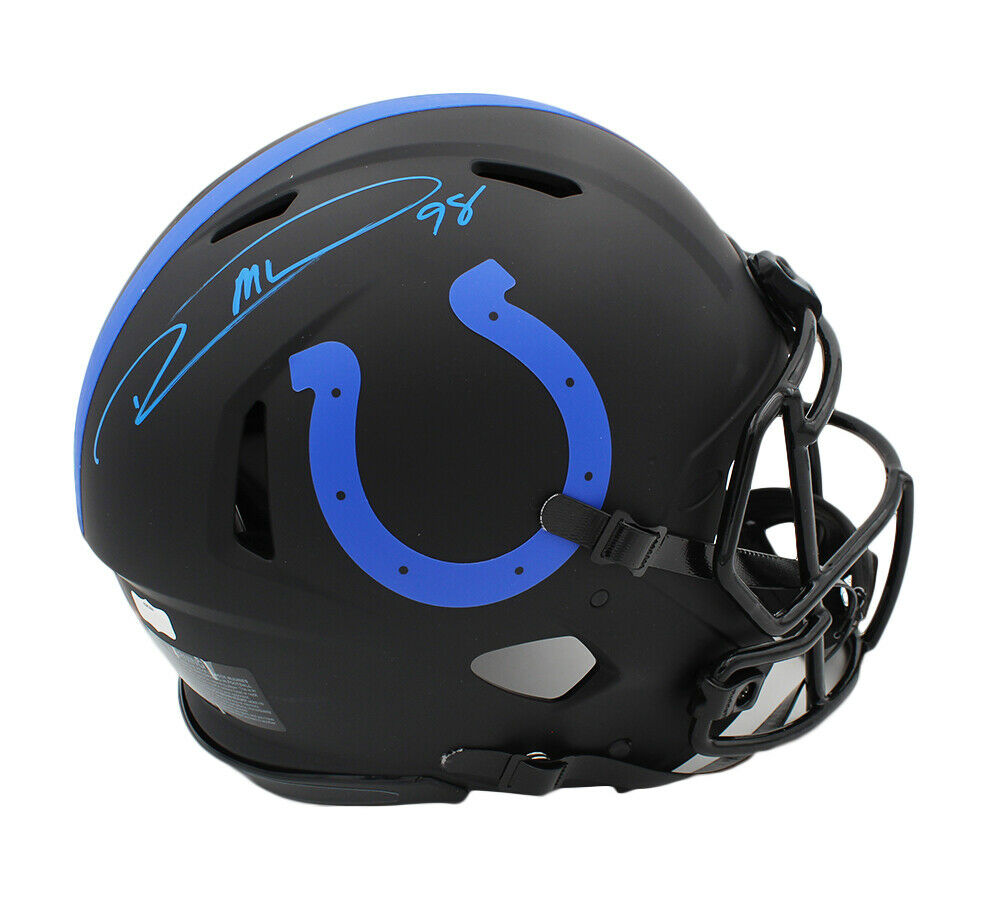 An Indianapolis Colts Speed Authentic Eclipse NFL Helmet Hand Signed by Robert Mathis. The signatures and item are in excellent condition. Robert is a former outside linebacker who spent his entire 14-year career with the Indianapolis Colts of the NFL. He played college football at Alabama A&M and was drafted by the Colts in the fifth round of the 2003 NFL Draft. A five-time Pro Bowler, Mathis won Super Bowl XLI with the Colts in 2006 over the Chicago Bears. AUTHENTICATION: The item is accompanied by a Certificate of Authenticity & Hologram - Serial Numbered and Databased Hologram - Picture of Robert from the signing