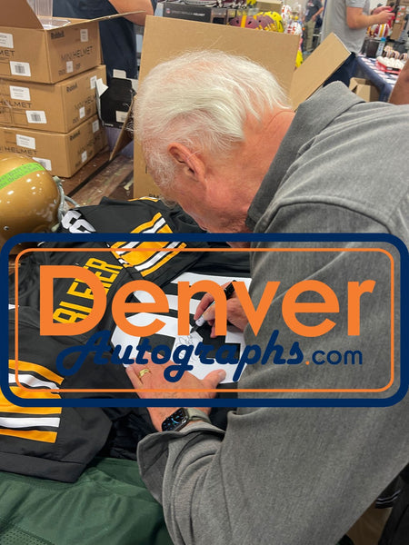 The number in the listing title is just an inventory sku for our records and is not the authentication number. The item pictured is a stock photo unless otherwise noted. This is a Pro Style size XL Black Jersey with sewn on numbers that was personally autographed by Rocky Bleier. Includes a certificate of authenticity from Beckett Authentication Services (BAS) and Denver Autographs.FREE SHIPPING within the USA on orders over $10!