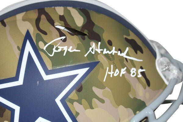 Roger Staubach Signed Dallas Cowboys Authentic Camo Helmet HOF BAS 30666 The number in the listing title is just an inventory sku for our records and is not the authentication number. This is a Dallas Cowboys full size authentic Camo speed helmet that was personally autographed by Roger Staubach with HOF inscription. Includes a certificate of authenticity from Beckett Authentication Services (BAS) and Denver Autographs.