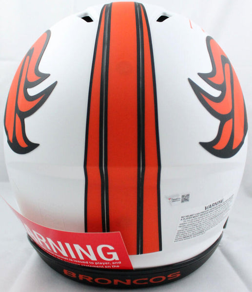 Russell Wilson Signed Denver Broncos Lunar Speed Authentic F/S Helmet-Fanatics*Orange This is a Russell Wilson of The Denver Broncos hand autographed Riddell Football full size Lunar Speed Authentic helmet. This item has a Fanatics Authentication, which comes with a numbered hologram sticker hologram and a QR code for verification. You can view this item on the Fanatics website. It was signed either at a public autograph appearance or a private signing. This is a stock photo of the item. Although you may not receive this exact item, the item you receive is virtually identical, brand new, and in great shape.