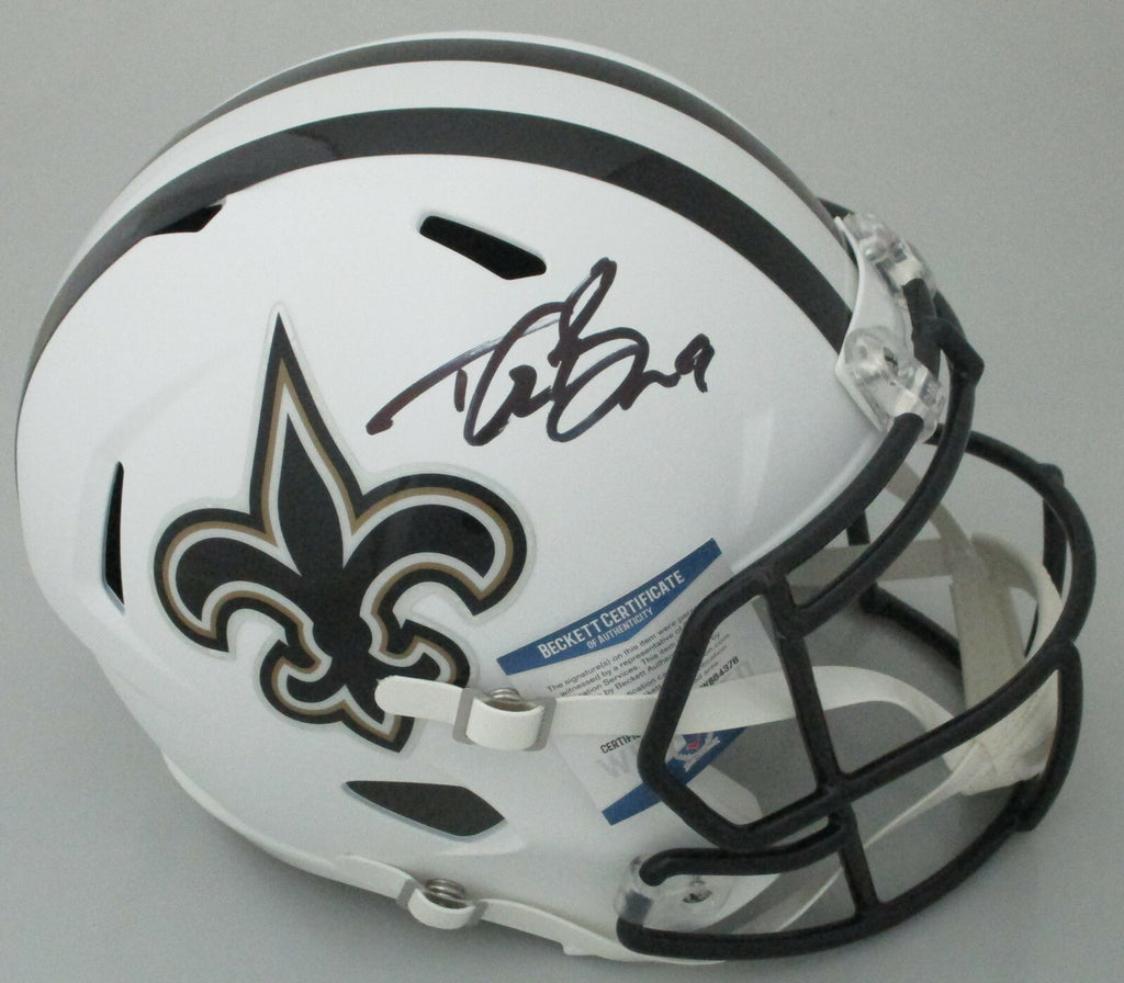 Saints DREW BREES Signed Full Size WHITE Replica Speed Helmet AUTO - Beckett