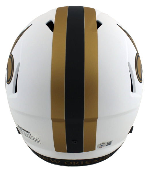 This Autographed Alternate Lunar Riddell Full Size Speed Rep Helmet has been Personally Signed by Michael Thomas of the New Orleans Saints. This item is 100% Authentic to include a hologram by Beckett Authentication Services. This item will come with the new Beckett Authentication hologram that has a scannable QR code rather than the traditional COA. If you would like to have a COA, you are welcome to reach out to Beckett for a printed certification once you receive your item. This is a BAS Witnessed Protection Program item which means a Beckett Authentication Service representative was present when this item was being signed. This is a stock item. We conducted an autograph signing with Michael Thomas and we have several of these available. The one you will receive will be of equal quality to the one pictured. This item can be verified through BAS Witnessed.