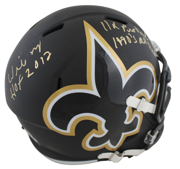 This Autographed Alternate AMP Riddell Full Size Speed Rep Helmet with the inscription of "HOF 12, 11x Pro Bowl, 1990's All-Decade" has been Personally Signed by Willie Roaf of the New Orleans Saints. This item is 100% Authentic to include a hologram by Beckett Authentication Services. This item will come with the new Beckett Authentication hologram that has a scannable QR code rather than the traditional COA. If you would like to have a COA, you are welcome to reach out to Beckett for a printed certification once you receive your item. This is a BAS Witnessed Protection Program item which means a Beckett Authentication Service representative was present when this item was being signed. This is a stock item. We conducted an autograph signing with Willie Roaf and we have several of these available. The one you will receive will be of equal quality to the one pictured. This item can be verified through BAS Witnessed.