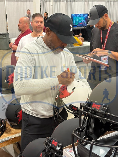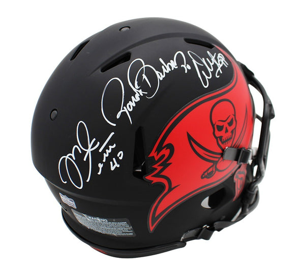 A Tampa Bay Buccaneers Speed Authentic Eclipse NFL Helmet hand signed by Warren Sapp, Ronde Barber & Mike Alstott. The item and signatures are in excellent condition. All signees were members of the 2002 Super Bowl Championship Buccaneers team. AUTHENTICATION: The item has been tagged with a SmarTag powered by Prova Technology, which gives you digital access to the items authentication records, including a proof picture from the signing.