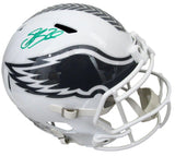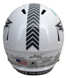 Saquon Barkley Signed/Autographed White Salute to Service Full Size Replica Football Helmet Philadelphia Eagles. This helmet is authenticated by PSA/DNA In-The-Presence and includes their tamper-proof hologram sticker.