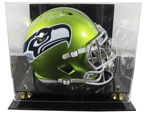 This Autographed Alternate Flash Riddell Full Size Speed Rep Helmet W/ Uv Mirrored Back Acrylic Display Case has been Personally Signed by Kenneth Walker III of the Seattle Seahawks. This item is 100% Authentic to include a hologram by Beckett Authentication Services. This item will come with an affixed Beckett Authentication Services (BAS) authentication sticker, which includes a scannable QR code to verify authenticity. Please note that Beckett no longer provides serial-numbered COA cards, and the attached BAS sticker will serve as the complete authentication for this item. This is a BAS Witnessed Protection Program item which means a Beckett Authentication Service representative was present when this item was being signed. We conducted an autograph signing with Kenneth Walker III where multiples of the same item were signed. While the photographs are representative of this item, the size, placement and strength of the signature may vary. Each item is hand signed, therefore, each autograph is unique. This item can be verified through BAS Witnessed.