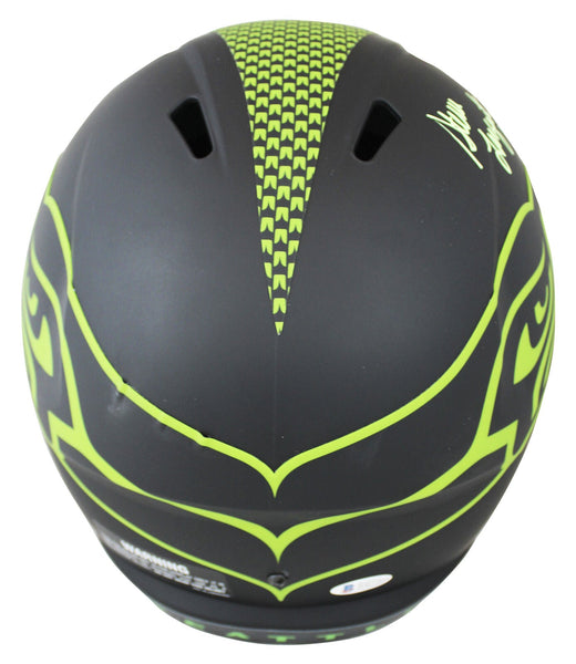 This Autographed Alternate Eclipse Riddell Full Size Speed Rep Helmet with the inscription of "HOF 95" has been Personally Signed by Steve Largent of the Seattle Seahawks. This item is 100% Authentic to include a Certificate of Authenticity (COA) / hologram by Beckett Authentication Services. This is a BAS Witnessed Protection Program item which means a Beckett Authentication Service representative was present when this item was being signed. This is a stock item. We conducted an autograph signing with Steve Largent and we have several of these available. The one you will receive will be of equal quality to the one pictured. This item can be verified through BAS Witnessed.
