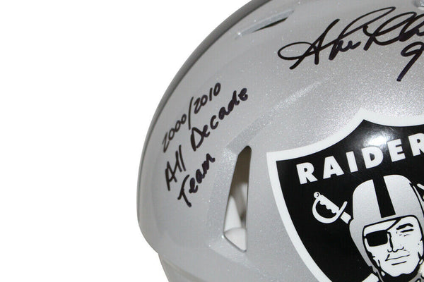 Shane Lechler Signed Oakland Raiders Authentic Speed Helmet 2 Insc BAS 34364 The number in the listing title is just an inventory sku for our records and is not the authentication number. This is a Oakland Raiders full size authentic speed helmet that was personally autographed by Shane Lechler with NFL Top 100 and All Decade Team inscriptions. Includes a certificate of authenticity from Beckett Authentication Services (BAS) and Denver Autographs.
