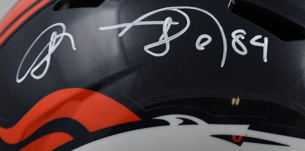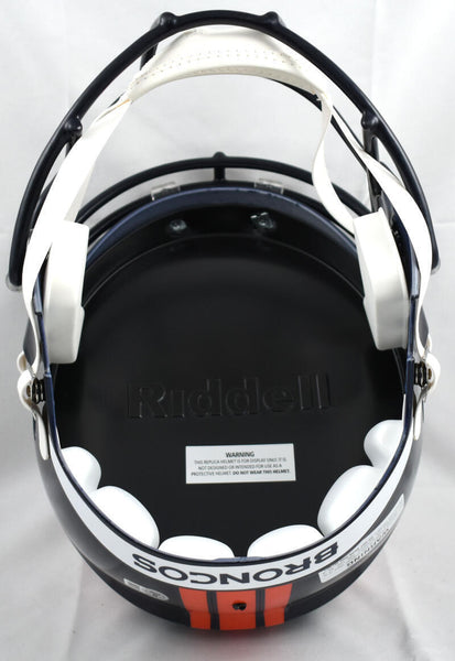 Shannon Sharpe Autographed Denver Broncos F/S Speed Helmet- Beckett W Hologram *White This is a Shannon Sharpe of the Denver Broncos hand autographed Riddell Football Speed full size replica helmet. This item has a Beckett Witnessed Authentication, which comes with a numbered and a QR code for verification. You can view this item on the Beckett website and it shows when and where the item was signed. It was signed either at a public autograph appearance or a private signing. This is a stock photo of the item. Although you may not receive this exact item, the item you receive is virtually identical, brand new, and in great shape.