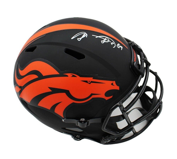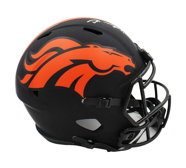 A Denver Broncos Speed Replica Eclipse NFL Helmet hand signed by Shannon Sharpe. The item and signatures are in excellent condition. Sharpe is a 3x Super Bowl Champion, 8x Pro Bowler, 4x First-team All-Pro, & Second -team All-Pro. AUTHENTICATION: The item has been tagged with a SmarTag powered by Prova Technology, which gives you digital access to the items authentication records, including a proof picture from the signing.