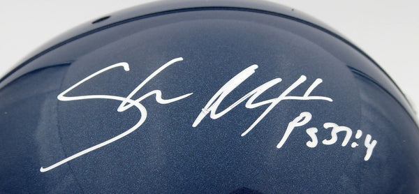 This is a Seattle Seahawks Blue Full Size Replica Helmet that has been hand signed by Shaun Alexander. This item has been certified authentic by Beckett Authentication (BAS) and comes with their tamper-proof QR Code sticker that can be verified on the Beckett-authentication.com.