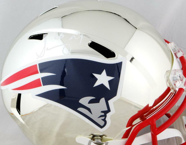 Sony Michel Autographed NE Patriots Full Size Chrome Helmet - Beckett Auth *Wh