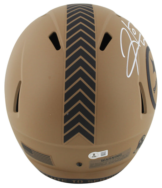 This Autographed Alternate 2023 Salute To Service II Riddell Full Size Speed Rep Helmet has been Personally Signed by Hines Ward of the Pittsburgh Steelers. This item is 100% Authentic to include a hologram by Beckett Authentication Services. This item will come with an affixed Beckett Authentication Services (BAS) authentication sticker, which includes a scannable QR code to verify authenticity. Please note that Beckett no longer provides serial-numbered COA cards, and the attached BAS sticker will serve as the complete authentication for this item. This is a BAS Witnessed Protection Program item which means a Beckett Authentication Service representative was present when this item was being signed. We conducted an autograph signing with Hines Ward where multiples of the same item were signed. While the photographs are representative of this item, the size, placement and strength of the signature may vary. Each item is hand signed, therefore, each autograph is unique. This item can be verified through BAS Witnessed.
