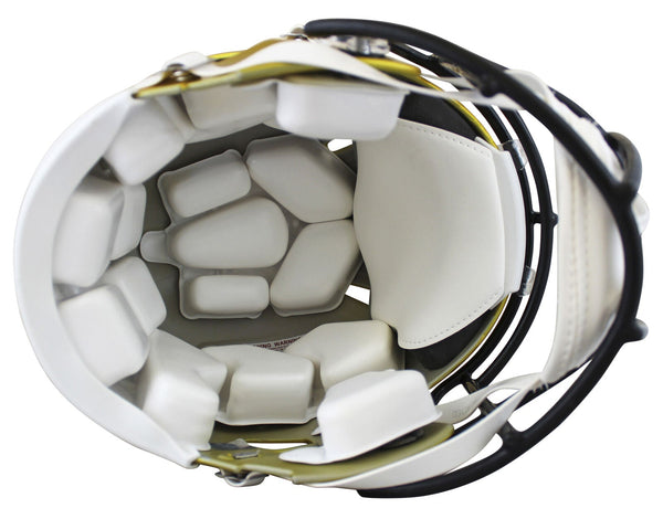 This Autographed Alternate Flash Riddell Authentic Full Size Speed Proline Helmet with the inscription of "HOF 15" has been Personally Signed by Jerome Bettis of the Pittsburgh Steelers. This item is 100% Authentic to include a Certificate of Authenticity (COA) / hologram by Beckett Authentication Services. This is a BAS Witnessed Protection Program item which means a Beckett Authentication Service representative was present when this item was being signed. We conducted an autograph signing with Jerome Bettis where multiples of the same item were signed. While the photographs are representative of this item, the size, placement and strength of the signature may vary. Each item is hand signed, therefore, each autograph is unique. This item can be verified through BAS Witnessed.