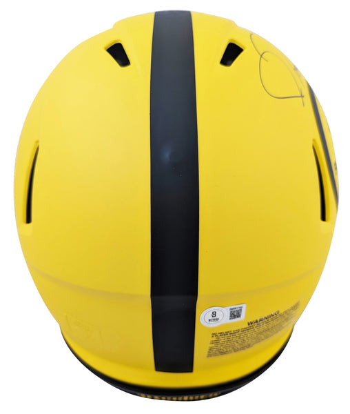 This Autographed Alternate Rave Riddell Full Size Speed Proline Helmet W/ Uv Mirrored Back Acrylic Display Case with the inscription of "HOF 15" has been Personally Signed by Jerome Bettis of the Pittsburgh Steelers. This item is 100% Authentic to include a hologram by Beckett Authentication Services. This item will come with an affixed Beckett Authentication Services (BAS) authentication sticker, which includes a scannable QR code to verify authenticity. Please note that Beckett no longer provides serial-numbered COA cards, and the attached BAS sticker will serve as the complete authentication for this item. This is a BAS Witnessed Protection Program item which means a Beckett Authentication Service representative was present when this item was being signed. We conducted an autograph signing with Jerome Bettis where multiples of the same item were signed. While the photographs are representative of this item, the size, placement and strength of the signature may vary. Each item is hand signed, therefore, each autograph is unique. This item can be verified through BAS Witnessed.