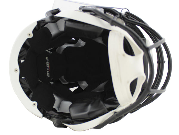 This Autographed Authentic Riddell Speed Flex Full Size Helmet with the inscription of "HOF 15, The Bus" has been Personally Signed by Jerome Bettis of the Pittsburgh Steelers. This item is 100% Authentic to include a Certificate of Authenticity (COA) / hologram by Beckett Authentication Services. This is a BAS Witnessed Protection Program item which means a Beckett Authentication Service representative was present when this item was being signed. This is a stock item. We conducted an autograph signing with Jerome Bettis and we have several of these available. The one you will receive will be of equal quality to the one pictured. This item can be verified through BAS Witnessed.