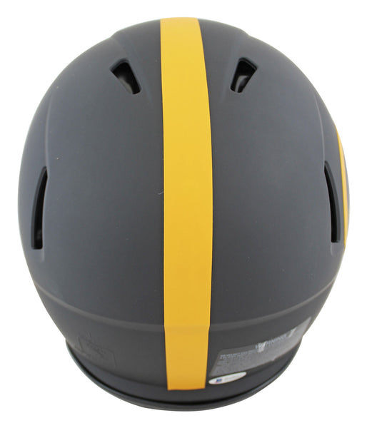 This Autographed Alternate Eclipse Riddell Authentic Full Size Speed Proline Helmet with the inscription of "HOF 20" has been Personally Signed by Troy Polamalu of the Pittsburgh Steelers. This item is 100% Authentic to include a Certificate of Authenticity (COA) / hologram by Beckett Authentication Services. This is a BAS Witnessed Protection Program item which means a Beckett Authentication Service representative was present when this item was being signed. We conducted an autograph signing with Troy Polamalu where multiples of the same item were signed. While the photographs are representative of this item, the size, placement and strength of the signature may vary. Each item is hand signed, therefore, each autograph is unique. This item can be verified through BAS Witnessed.