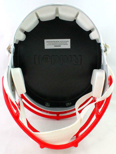 Stefon Diggs Autographed Buffalo Bills Flat White Speed FS Helmet- Beckett W*Blk This is a Stefon Diggs of the Buffalo Bills hand autographed Riddell Football Flat White Speed replica helmet. This item has a Beckett Witnessed Authentication, which comes with a numbered and a matching Certificate of Authenticity. You can view this item on the Beckett website and it shows when and where the item was signed. It was signed either at a public autograph appearance or a private signing. This is a stock photo of the item. Although you may not receive this exact item, the item you receive is virtually identical, brand new, and in great shape.
