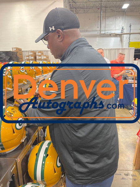 The number in the listing title is just an inventory sku for our records and is not the authentication number. The item pictured is a stock photo unless otherwise noted. This is a Green Bay Packers Full Size Replica Helmet that was personally autographed by Sterling Sharpe includes "HOF" inscription. Includes a certificate of authenticity from Beckett Authentication Services (BAS) and Denver Autographs.