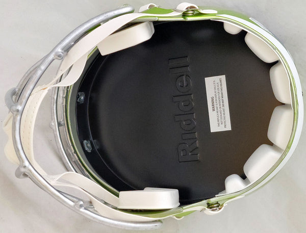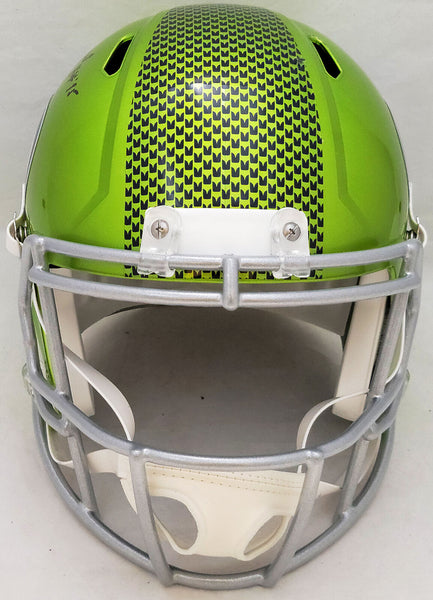 This is a Seattle Seahawks Flash Green Full Size Replica Speed Helmet that has been hand signed by Steve Largent. The Flash helmets are delicate and may have some marks or scratches on them. This item was inscribed "HOF 95." This item was signed in the presence of a Mill Creek Sports representative and comes with their serial numbered hologram and matching certificate of authenticity.