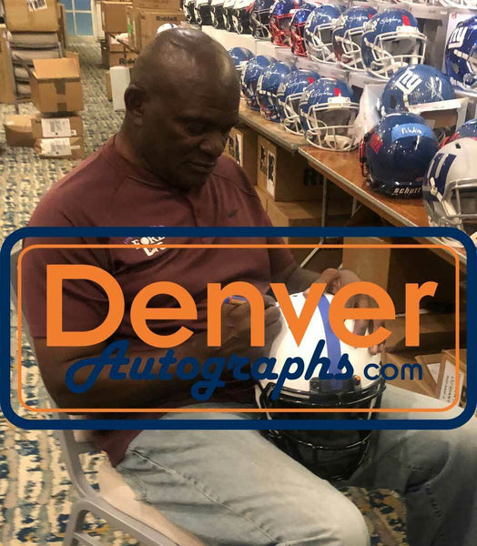 Taylor Lawrence Autographed New York Giants F/S Lunar Helmet HOF BAS 33961 The number in the listing title is just an inventory sku for our records and is not the authentication number. This is a New York Giants full size lunar speed replica helmet that was personally autographed by Taylor Lawrence with HOF inscription. Includes a certificate of authenticity from Beckett Authentication Services (BAS) and Denver Autographs.