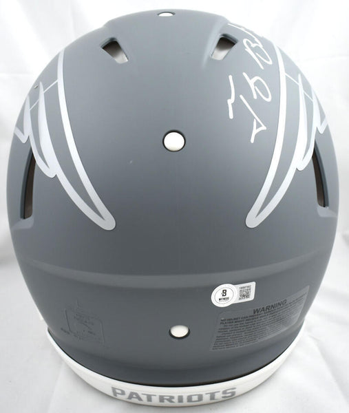 Tedy Bruschi Autographed New England Patriots F/S Slate Speed Authentic Helmet - Beckett W Hologram *White This is a Tedy Bruschi of the New England Patriots hand autographed Riddell Football Full Size Slate Speed Authentic Helmet. This item has a Beckett Witnessed Authentication, which comes with a Beckett numbered sticker hologram and a QR code for verification. You can view this item on the Beckett website, it shows when and where the item was signed. It was signed either at a public autograph appearance or a private signing. This is a stock photo of the item. Although you may not receive this exact item, the item you receive is virtually identical, brand new, and in great shape.