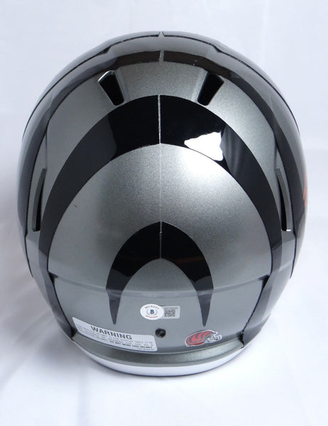 This is a hand autograph of Tee Higgins of the Cincinnati Bengals on a Riddell Football Full Size Flash Speed Replica Helmet. This item has a Beckett Witness Authentication, which comes with a numbered hologram and a QR code for verification. You can view this item on the Beckett Authentication website, and it shows when and where the item was signed. It was signed either at a public autograph appearance or a private signing. This helmet is the exact item that you will be receiving. Please see pictures for further details. This is a hand autograph of Tee Higgins of the Cincinnati Bengals on a Riddell Football Full Size Flash Speed Replica Helmet. This item has a Beckett Witness Authentication, which comes with a numbered hologram and a QR code for verification. You can view this item on the Beckett Authentication website, and it shows when and where the item was signed. It was signed either at a public autograph appearance or a private signing. This helmet is the exact item that you will be receiving. Please see pictures for further details.