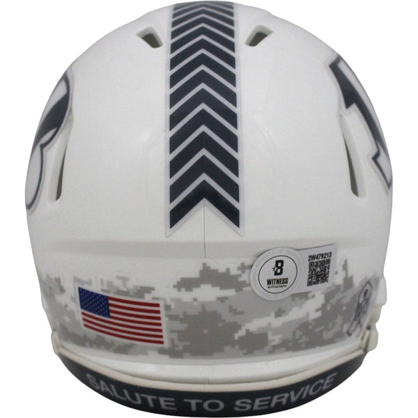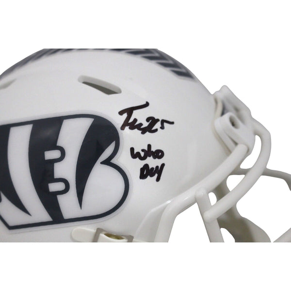 The number in the listing title is just an inventory sku for our records and is not the authentication number. The item pictured is a stock photo unless otherwise noted. This is a Cincinnati Bengals 2024 Salute to Service Mini Helmet that was personally autographed by Tee Higgins includes "Who Dey" inscription. Includes a certificate of authenticity from Beckett Authentication Services (BAS) and Denver Autographs.
