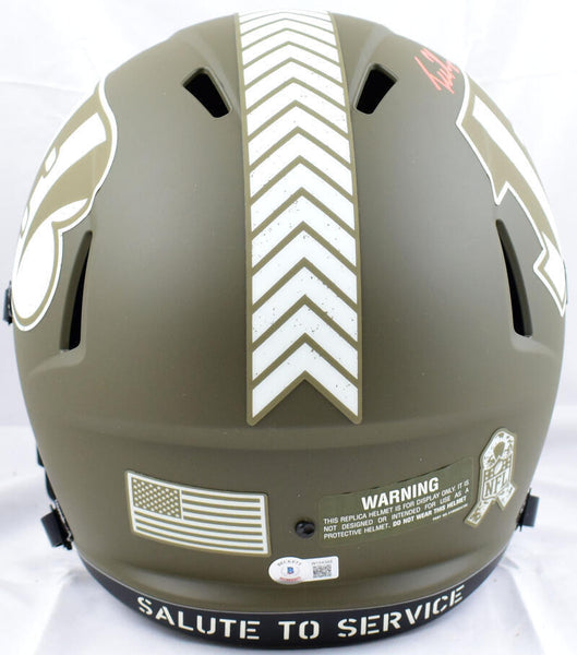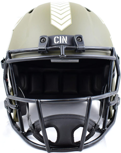 Tee Higgins Autographed Cincinnati Bengals F/S Salute to Service Speed Helmet - Beckett W Hologram *Orange This is a hand autograph of Tee Higgins of the Cincinnati Bengals on a Riddell Football Full Size Salute to Service Speed Replica Helmet. This item has a Beckett Witnessed Authentication, which comes with a numbered hologram and a QR code for verification. You can view this item on the Beckett Authentication website and it shows when and where the item was signed. It was signed either at a public autograph appearance or a private signing. This is a stock photo of the item. Although you may not receive this exact item, the item you receive is virtually identical and brand new in great shape.