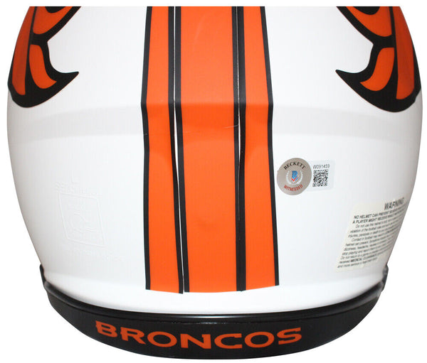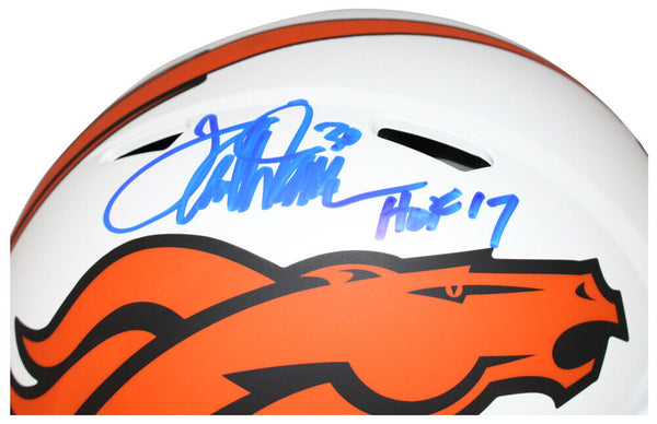 Terrell Davis Autographed Denver Broncos Lunar Authentic Helmet Beckett 40599 The number in the listing title is just an inventory sku for our records and is not the authentication number. The item pictured is a stock photo unless otherwise noted. This is a Denver Broncos Speed Full Size Lunar Authentic Helmet that was personally autographed by Terrell Davis with "HOF" inscription. Includes a certificate of authenticity from Beckett Authentication Services (BAS) and Denver Autographs.