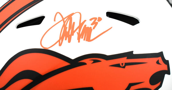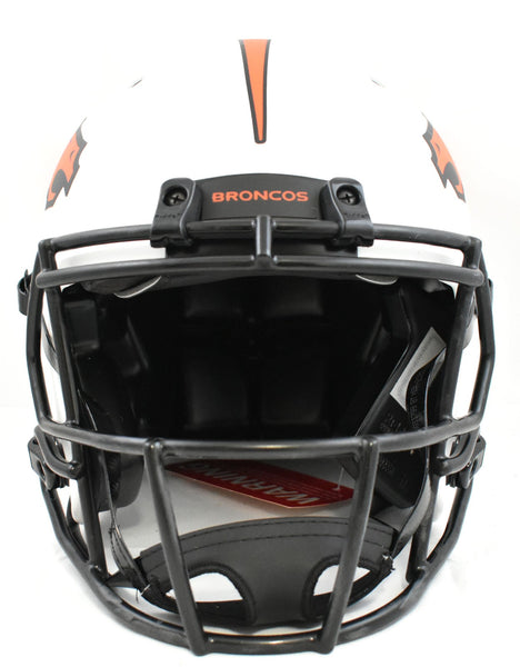 This is a Terrell Davis of the Denver Broncos autographed Riddell football full size Lunar Speed Authentic helmet. This item has a Beckett Witnessed Authentication, which comes with a numbered hologram and a QR code for verification. You can view this item on the Beckett Authentication website, and it shows when and where the item was signed. It was signed either at a public autograph appearance or a private signing. This is a stock photo of the item. Although you may not receive this exact item, the item you receive is virtually identical, brand new, and in great shape. *Autograph location may vary* This is a Terrell Davis of the Denver Broncos autographed Riddell football full size Lunar Speed Authentic helmet. This item has a Beckett Witnessed Authentication, which comes with a numbered hologram and a QR code for verification. You can view this item on the Beckett Authentication website, and it shows when and where the item was signed. It was signed either at a public autograph appearance or a private signing. This is a stock photo of the item. Although you may not receive this exact item, the item you receive is virtually identical, brand new, and in great shape. *Autograph location may vary*