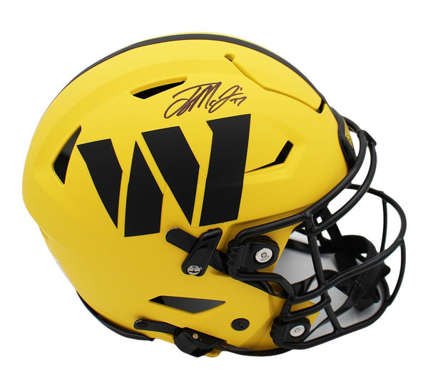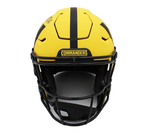 A Washington Commanders Speed Flex Authentic Rave NFL Helmet hand signed by Terry McLaurin. The item and signature are in excellent condition. McLaurin is a wide receiver for the Washington Commanders (NFL). He played college football for the Ohio State Buckeyes and was selected by Washington in the third round of the 2019 NFL draft. In 2024, McLaurin set the team record for most touchdown catches in a season with 13 and earned second-team All-Pro honors. AUTHENTICATION: The item has been tagged with a Beckett Serial Numbered and Databased Hologram.