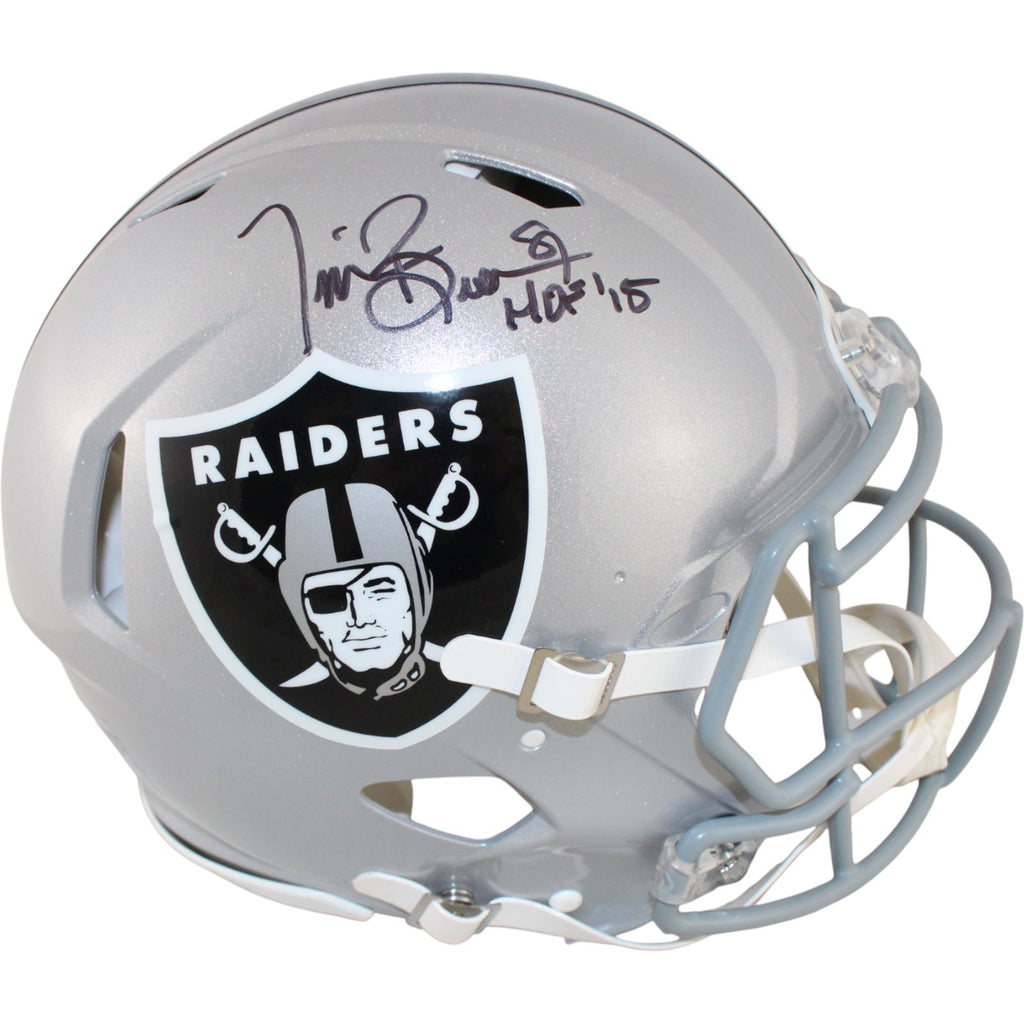 The number in the listing title is just an inventory sku for our records and is not the authentication number. The item pictured is a stock photo unless otherwise noted. This is a Las Vegas Raiders Full Size Authentic Helmet that was personally autographed by Tim Brown includes "HOF" inscription. Includes a certificate of authenticity from Fanatics Authentics (FAN) and Denver Autographs. FREE SHIPPING within the USA on orders over $10!
