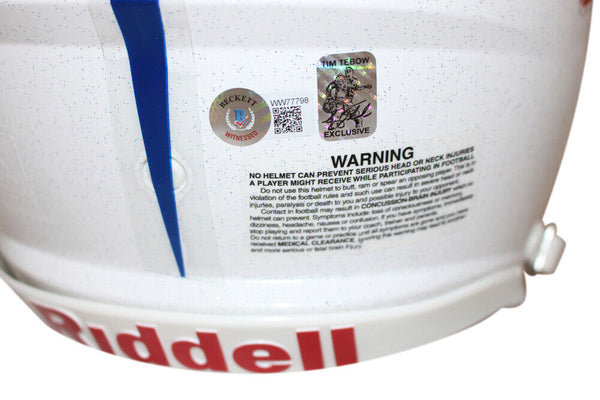Tim Tebow Autographed Florida Gators 2015 White Authentic Helmet BAS 40040 The number in the listing title is just an inventory sku for our records and is not the authentication number. The item pictured is a stock photo unless otherwise noted. This is a Florida Gators 2015 White authentic helmet that was personally autographed by Tim Tebow. Includes a certificate of authenticity from Beckett Authentication Services (BAS) and Denver Autographs.