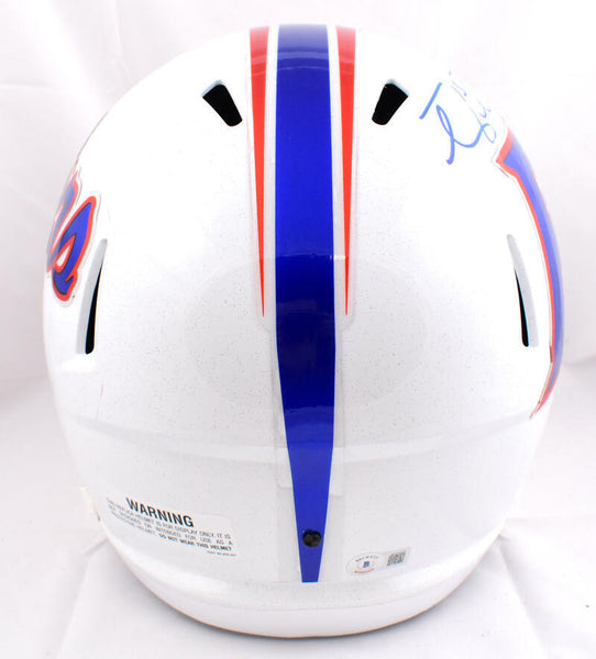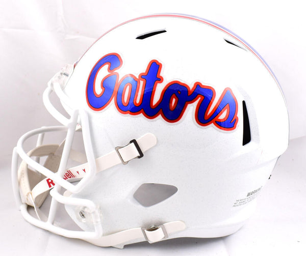 Tim Tebow Autographed Florida Gators F/S White Alt Speed Helmet - Beckett W Hologram *Blue This is a hand autographed Helmet of Tim Tebow of the Florida Gators. This is a Riddell Football Full Size White Alternate Speed Replica Helmet. This item has a Beckett Witnessed Authentication, which comes with a numbered sticker hologram and a QR code for verification. You can view this item on the Beckett Authentication website, it shows when and where the item was signed. It was signed either at a public autograph appearance or a private signing. This is a stock photo of the item. Although you may not receive this exact item, the item you receive is virtually identical and brand new in great shape.