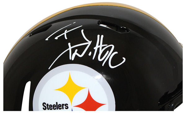 The number in the listing title is just an inventory sku for our records and is not the authentication number. The item pictured is a stock photo unless otherwise noted. This is a Pittsburgh Steelers Authentic Full Size Speed Helmet that was personally autographed by TJ Watt. Includes a certificate of authenticity from Beckett Authentication Services (BAS) and Denver Autographs.