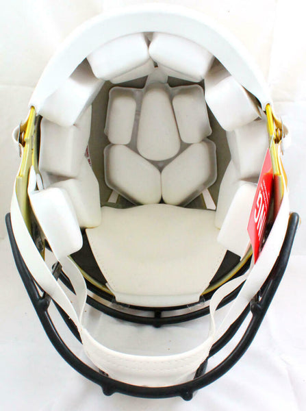 TJ Watt Signed Pittsburgh Steelers F/S Flash Speed Authentic Helmet-Beckett W Hologram *Black This is a TJ Watt of the Pittsburgh Steelers hand autographed Riddell Full Size Flash Speed Authentic Helmet. This item has a Beckett Authentication, which comes with a numbered sticker hologram and a QR code for verification. You can view this item on the Beckett website and it shows when and where the item was signed. It was signed either at a public autograph appearance or a private signing. This is a stock photo of the item. Although you may not receive this exact item, the item you receive is virtually identical, brand new, and in great shape. *Slight damage to the paint* *Selling as is*