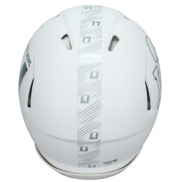 This authentic New England Patriots Super Bowl 51 commemorative helmet has been personally hand-signed by Tom Brady. It is officially licensed by the National Football League and comes with an individually numbered, tamper-evident hologram from Fanatics Authentic. To ensure authenticity, the hologram can be reviewed online. This process helps to ensure that the product purchased is authentic and eliminates any possibility of duplication or fraud.