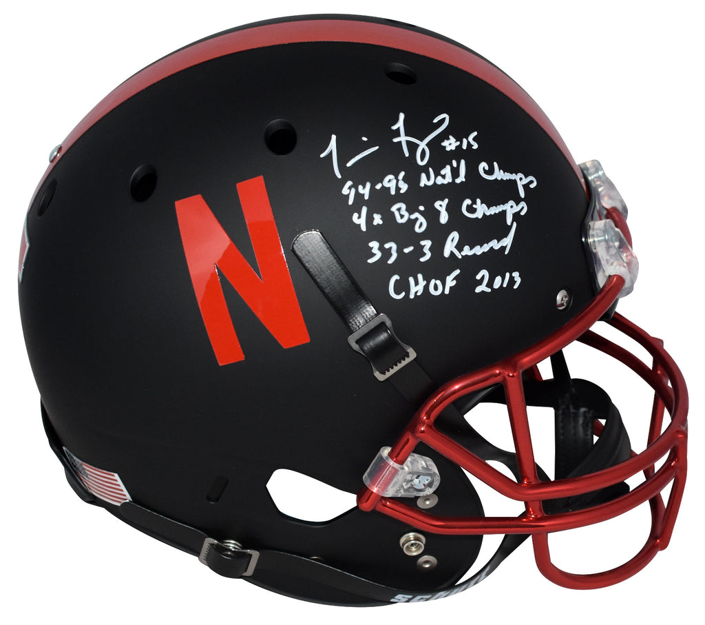 Tommie Frazier, former All-American quarterback for the Cornhuskers, has hand signed this matte black Nebraska Schutt full-size replica helmet at a private signing. He included 4 inscriptions with his signature. This item comes with a certificate of authenticity (COA) from Signature Sports Marketing, one of the leaders in the industry. You will receive a paper COA along with matching serial-numbered holograms.Item pictured may not be the exact item you will receive. It will be similar quality, and we guarantee your satisfaction.