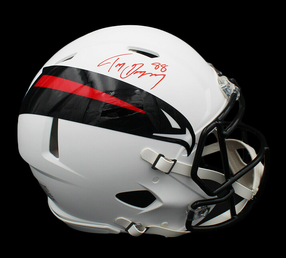 An Atlanta Falcons Speed Authentic AMP NFL Helmet hand signed by Tony Gonzalez. The item and signature are in excellent condition. Widely considered one of the greatest tight ends of all time, Tony played college football and basketball at UC Berkeley before being drafted by the Kansas City Chiefs 13th overall in the first round of the 1997 NFL Draft. Tony is a 14x Pro Bowler, 6x First-team All-Pro, and 2004 NFL receptions leader. Tony was inducted into the Pro Football Hall of Fame during his first year of eligibility in 2019. AUTHENTICATION: The item is accompanied by a Certificate of Authenticity - Serial Numbered and Databased Hologram - Picture of Tony from the signing