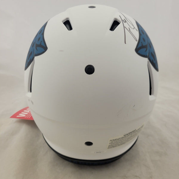 TRAVIS ETIENNE AUTOGRAPHED JACKSONVILLE JAGUARS FULL SIZE LUNAR ECLIPSE SPEED AUTHENTIC HELMETBECKETT QRTHIS MEANS THE HELMET WAS SIGNED WITH A JSA REPRESENTATIVE PRESENT SO YOU CAN BE 100% CERTAIN ITS THE REAL THING.