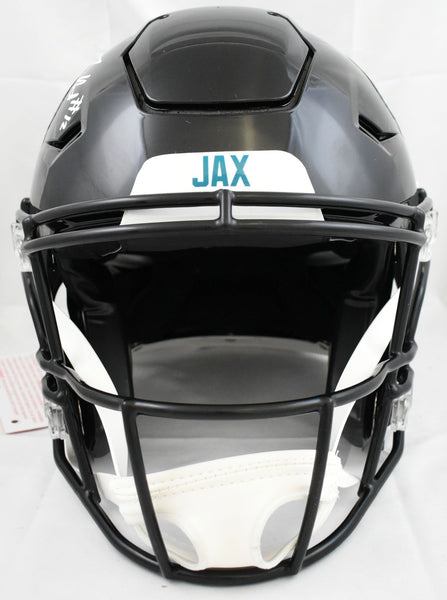 This is a Travis Hunter of the Jacksonville Jaguars autographed Riddell football full size SpeedFlex Authentic helmet. This item has a Beckett Witnessed Authentication, which comes with a numbered hologram and a QR code for verification. You can view this item on the Beckett Authentication website, and it shows when and where the item was signed. It was signed either at a public autograph appearance or a private signing. This is a stock photo of the item. Although you may not receive this exact item, the item you receive is virtually identical, brand new, and in great shape. *Autograph location may vary* This is a Travis Hunter of the Jacksonville Jaguars autographed Riddell football full size SpeedFlex Authentic helmet. This item has a Beckett Witnessed Authentication, which comes with a numbered hologram and a QR code for verification. You can view this item on the Beckett Authentication website, and it shows when and where the item was signed. It was signed either at a public autograph appearance or a private signing. This is a stock photo of the item. Although you may not receive this exact item, the item you receive is virtually identical, brand new, and in great shape. *Autograph location may vary*
