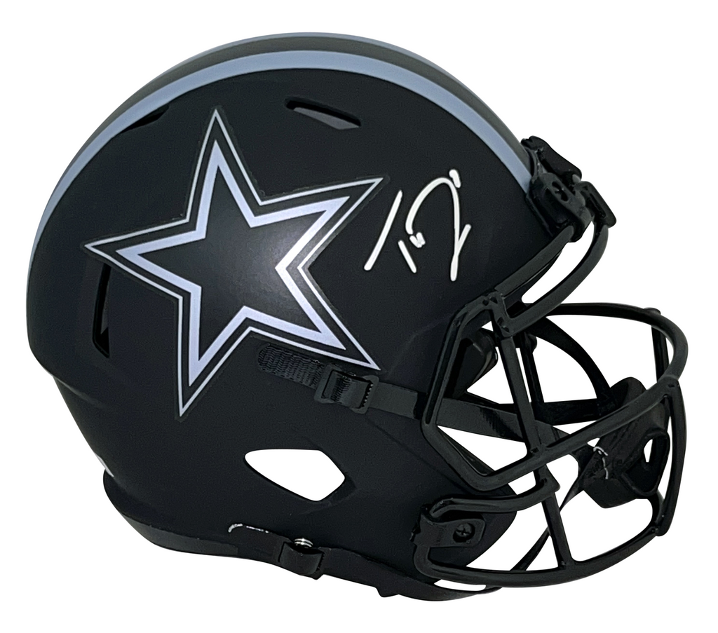 Trevon Diggs, star cornerback for the Dallas Cowboys, has hand signed this Cowboys Riddell Speed Eclipse full-size replica helmet at a private signing. This item is authenticated by Beckett Authentication Services and was signed in the presence of one of their representatives. Their tamper-evident hologram featuring a QR code and serial number is on the item. The authenticity can be verified online by entering the serial number or scanning the QR code.Item pictured may not be the exact item you will receive. It will be similar quality, and we guarantee your satisfaction.