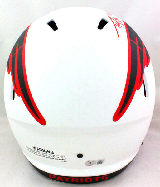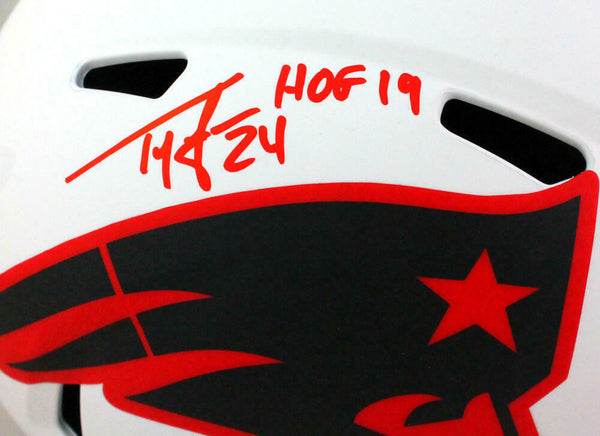 Ty Law Autographed NE Patriots Lunar Speed Full Size Helmet HOF- Beckett W *Red This is a Ty Law of the New England Patriots hand autographed Riddell Football Lunar Speed full size replica helmet inscribed with "HOF". This item has a Beckett Witnessed Authentication, which comes with a numbered and a matching Beckett Certificate of Authenticity. You can view this item on the Beckett Authentication website, it shows when and where the item was signed. It was signed either at a public autograph appearance or a private signing. This is a stock photo of the item. Although you may not receive this exact item, the item you receive is virtually identical, brand new, and in great shape.