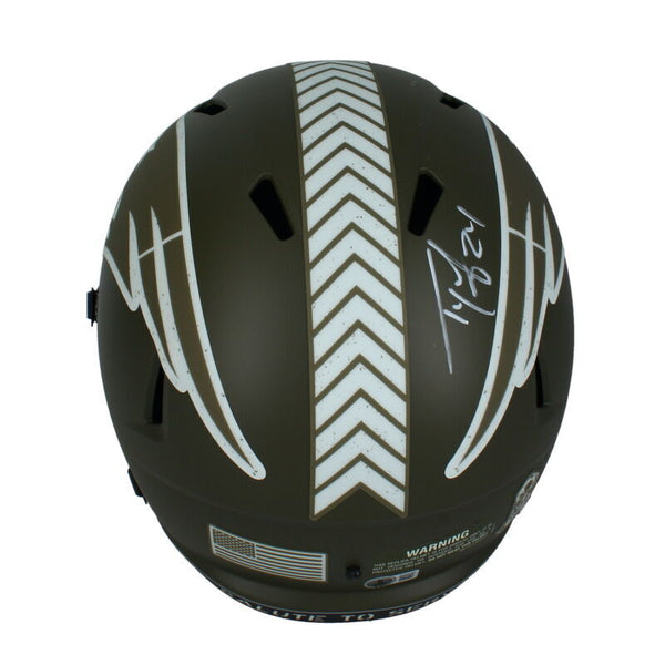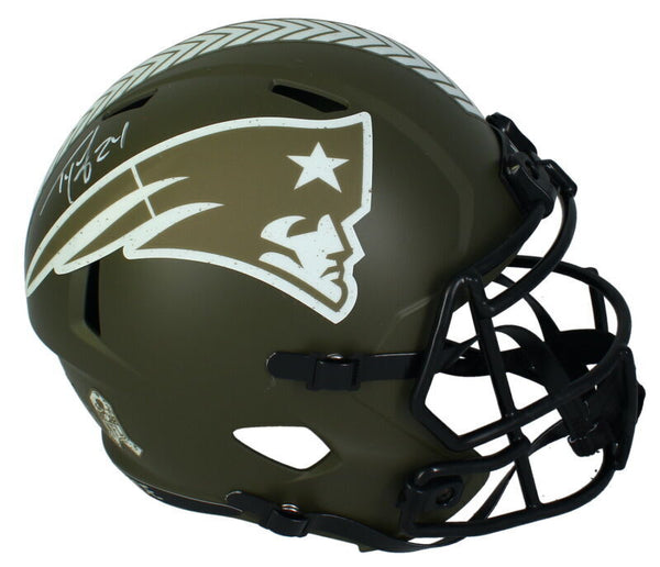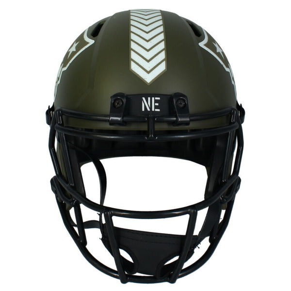 This Patriots Salute to Service full size replica Riddell Speed helmet has been personally hand-signed by Ty Law. It comes with an individually numbered, tamper-evident hologram from Beckett Authentic. To ensure authenticity, the hologram can be reviewed online. This process helps to ensure that the product purchased is authentic and eliminates any possibility of duplication or fraud.