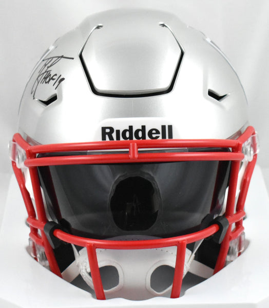 This is a Ty Law of the New England Patriots autographed Riddell football Mid-Size SpeedFlex helmet. Inscribed HOF. This item has a Beckett Witnessed Authentication, which comes with a numbered hologram and a QR code for verification. You can view this item on the Beckett Authentication website, and it shows when and where the item was signed. It was signed either at a public autograph appearance or a private signing. This is a stock photo of the item. Although you may not receive this exact item, the item you receive is virtually identical, brand new, and in great shape. *Autograph location may vary* This is a Ty Law of the New England Patriots autographed Riddell football Mid-Size SpeedFlex helmet. Inscribed HOF. This item has a Beckett Witnessed Authentication, which comes with a numbered hologram and a QR code for verification. You can view this item on the Beckett Authentication website, and it shows when and where the item was signed. It was signed either at a public autograph appearance or a private signing. This is a stock photo of the item. Although you may not receive this exact item, the item you receive is virtually identical, brand new, and in great shape. *Autograph location may vary*