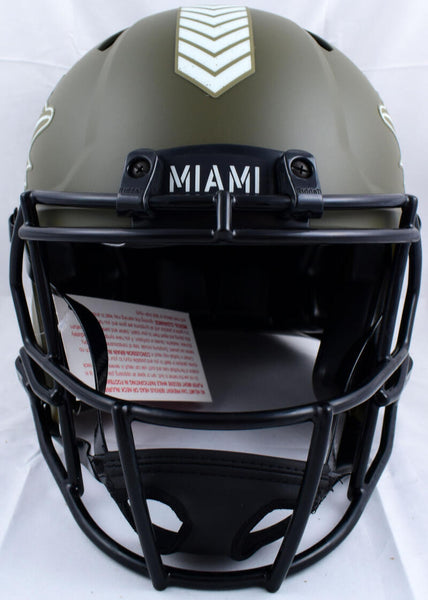 Tyreek Hill Autographed Miami Dolphins F/S Salute to Service Speed Authentic Helmet-Beckett W Hologram *Orange This is a Tyreek Hill of the Miami Dolphins hand autographed Riddell Full Size Salute to Service Speed Authentic Helmet. This item has a Beckett Witness Authentication, which comes with a numbered hologram and a QR code for verification. You can view this item on the Beckett website and it shows when and where the item was signed. It was signed either at a public autograph appearance or a private signing. This is a stock photo of the item. Although you may not receive this exact item, the item you receive is virtually identical, brand new, and in great shape.