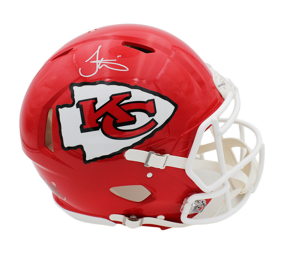 A Kansas City Chiefs Speed Authentic NFL Helmet hand signed by Tyreek Hill. The item and signature are in excellent condition. Tyreek was drafted into the NFL in 2016 Round:5,Pick:165. Tyreek was a Super Bowl champion (LIV). Tyreek 3xFirst-team All-Pro (2018). Tyreek is a Second-team All-Pro (2018). Tyreek 5xPro Bowl (2016-2020). Tyreek a NFL 2010s All-Decade Team. AUTHENTICATION: The item is accompanied by a Beckett Certificate of Authenticity, Beckett Serial Numbered and Databased Hologram, & Picture of Tyreek from the Signing